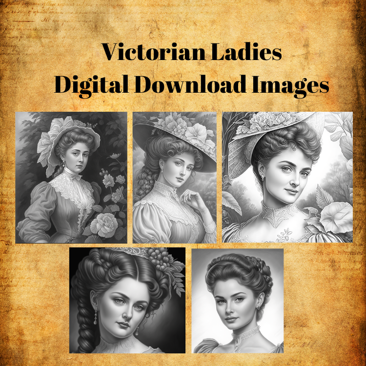 25 images of beautiful Victorian Ladies that you can cut out and use in all your papercrafts! Two 8.5" x 11" pages of unique and original images, all generated using artificial intelligence software.
